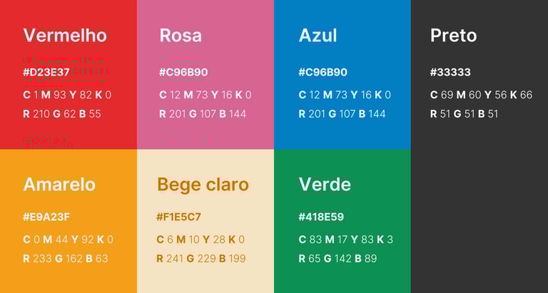 Cada cor da paleta foi escolhida para criar uma identidade marcante, amigável e coerente com a proposta de tornar o conteúdo claro, acessível e convidativo para todos os públicos.