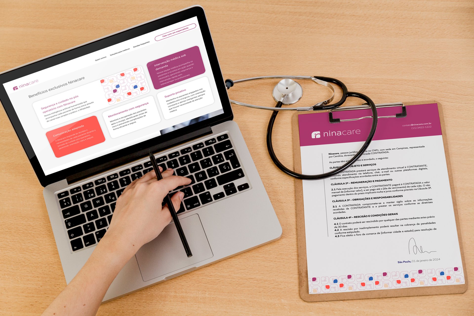 Apesar de pertencer ao ramo médico a marca Ninacare possui valores associados também à modernidade, acolhimento e inovação.